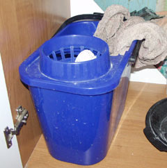 9. Разлив на пол пиво (вино, сок, кофе, чай), постоялец обязан (вне зависимости от половой принадлежности) как можно скорее (по возможности сразу по происшествии оного события) произвести уничтожение следов своего мерзкого проступка посредством использования половой тряпки, специально предназначенной для этой цели. Оную тряпку следует извлечь из места ее постоянного пребывания (все тот же специальный шкафчик под раковиной на кухне - см. фото к 7) и, перед протиранием пола, намочить в специальном ведре (местоположение то же) ярко-синего цвета.