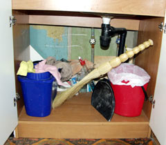 Открытый шкафчик, где можно взять все необходимое для уборки.