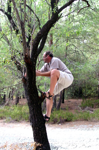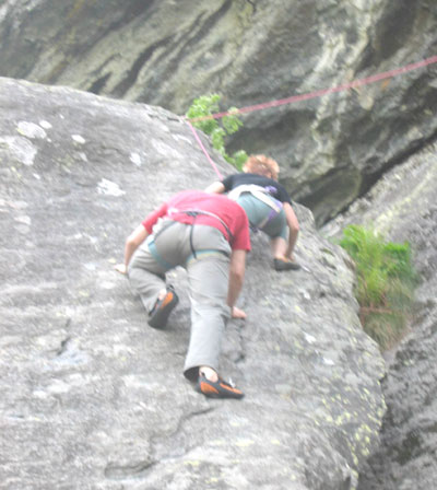 Женя лезет в гору. Любимая жена прокладывает путь-)