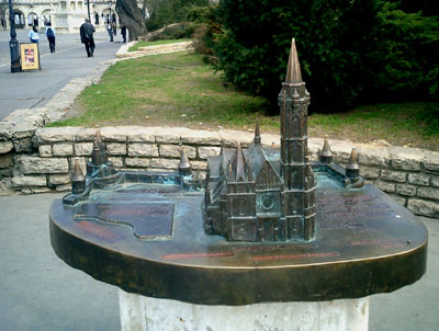Модель - Церковь Матяша для слепых, их приводят сюда и чтобы они смогли себе представить все, сделан макет и вокруг него пояснения шрифтом для слепых...