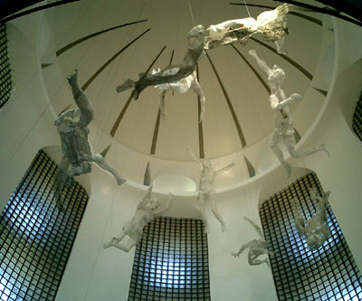 После окончания концерта, пока люди расходятся, поднимаюсь на верхний 5-й этаж...все подкупольное пространство занято произведением современного искусства - группа летящих фигур из проволочной сетки. Супермодный художник...но мне не понять-))