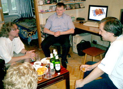 А сам День рождения Андрея мы отметили в компании хорошо нам известных друзей, неожиданно решивших поздравить его прямо на дому - пришлось срочно организовать закуску. А виски у нас было! Немножко, бутылочку на 5 литров, мы из офиса привезли шефу домой, чтобы он мог достойно встречать гостей, приезжающих его поздравить лично-))